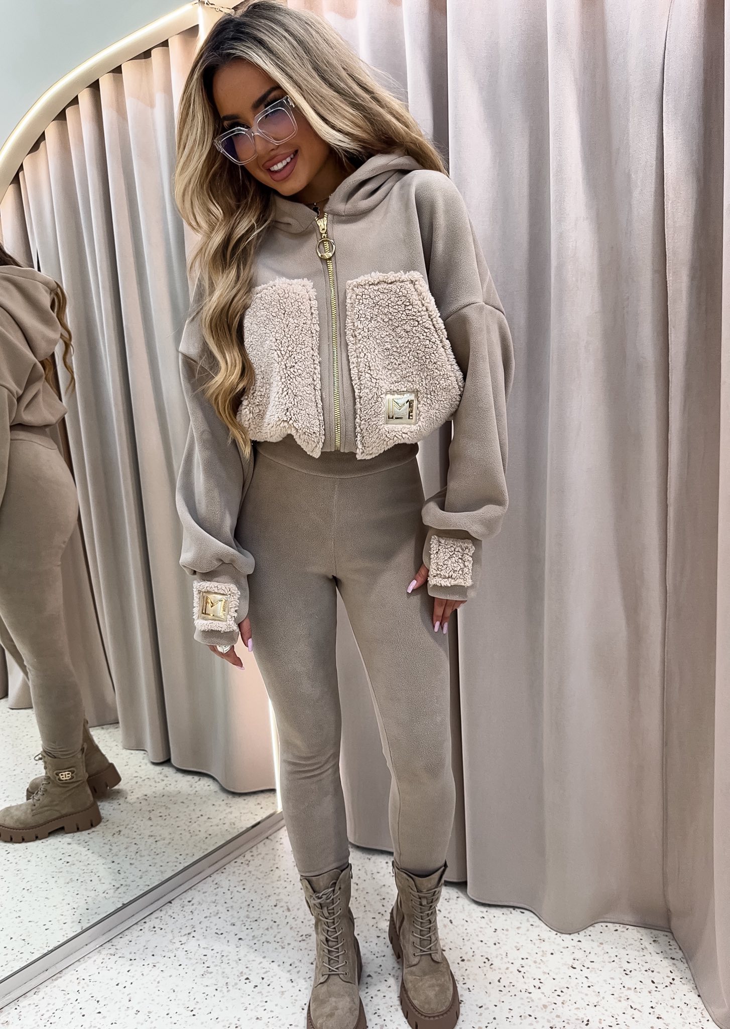 Beżowy odcień to wybór kobiet, które kochają ponadczasową elegancję i subtelny luksus. Ten komplet to nie tylko dres – to styl życia, który pozwala wyglądać doskonale w każdej chwili dnia.