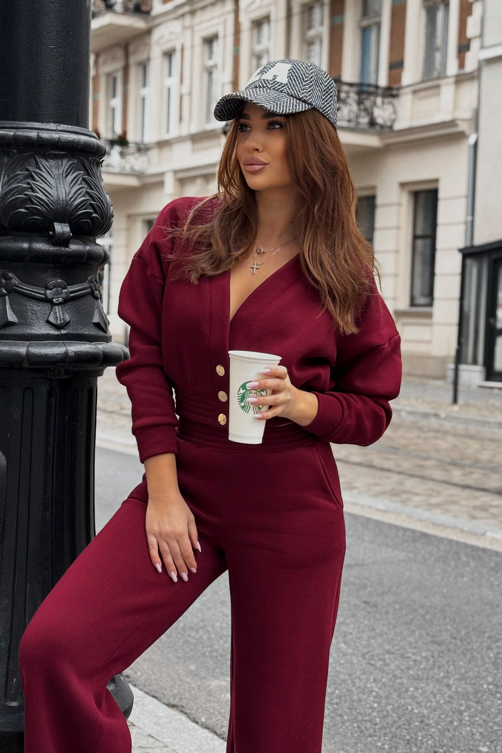 Komplet damski Meggi LaBalancia online – bluza + spodnie bordowe premium | Sklep She&You