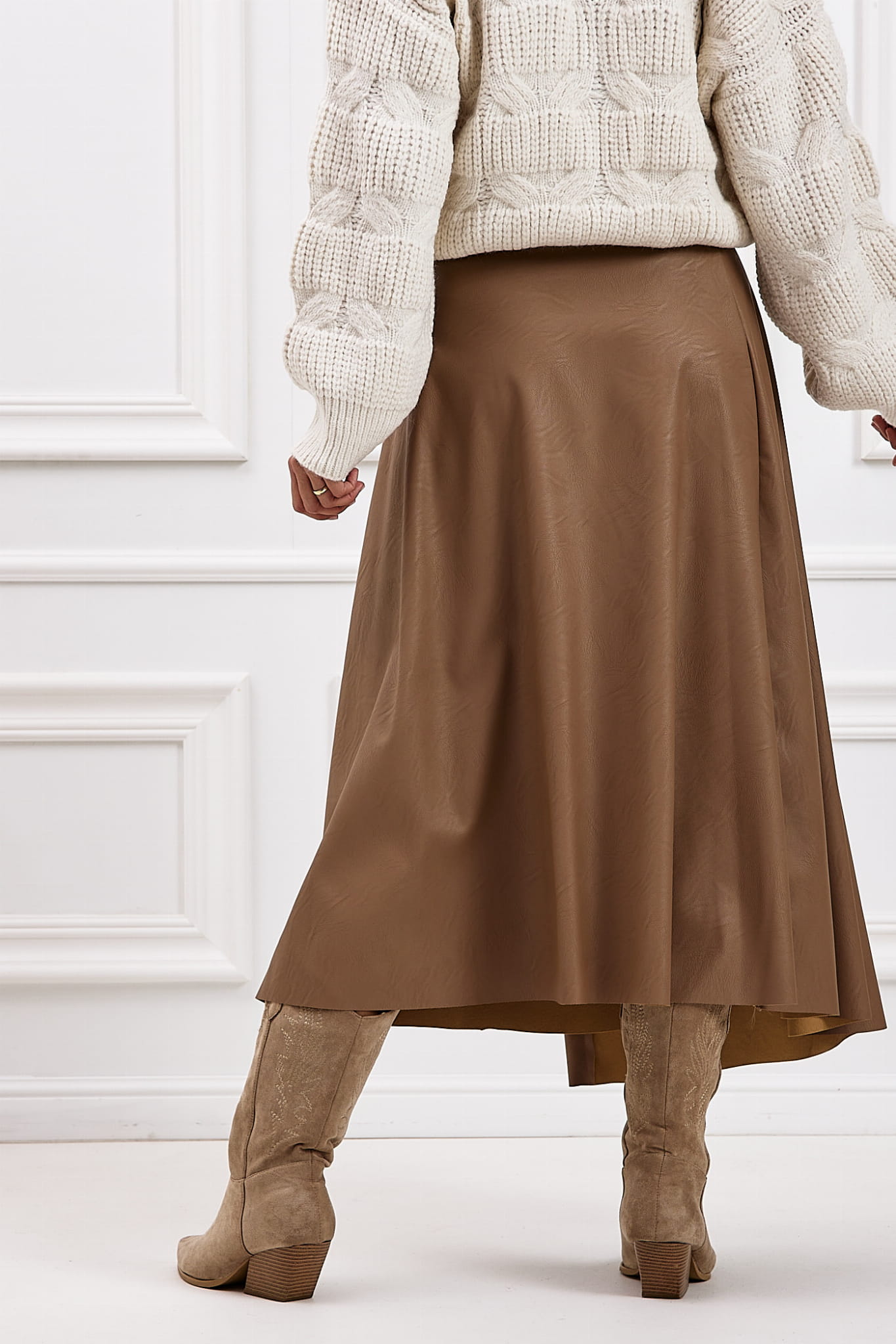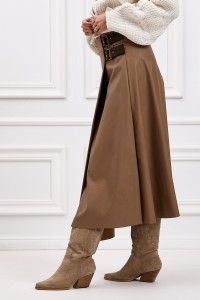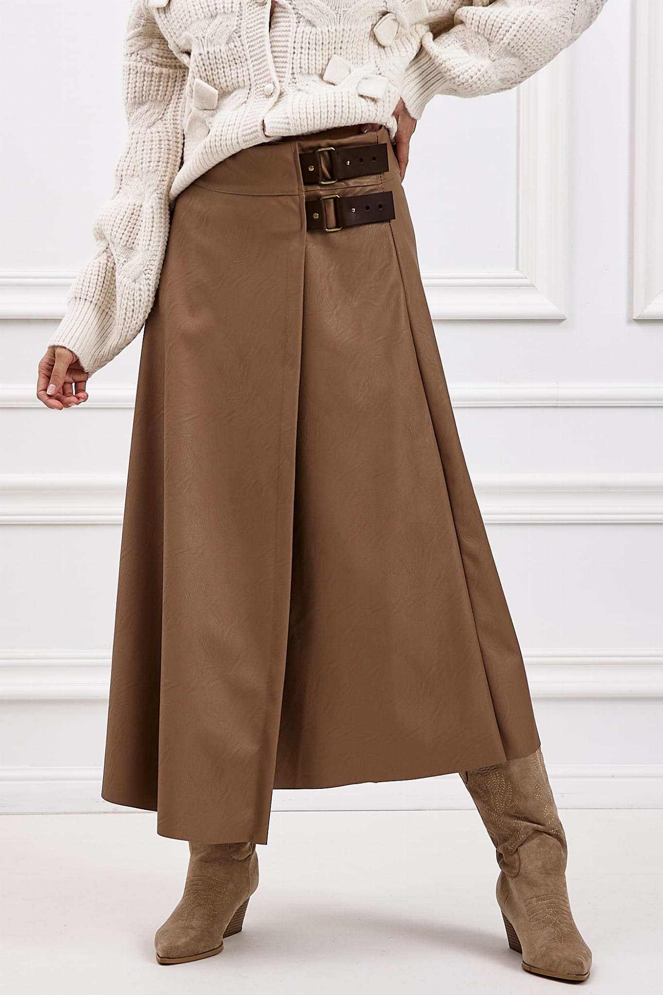 Spódnica damska ze sztucznej skóry camel z klamrami moda włoska