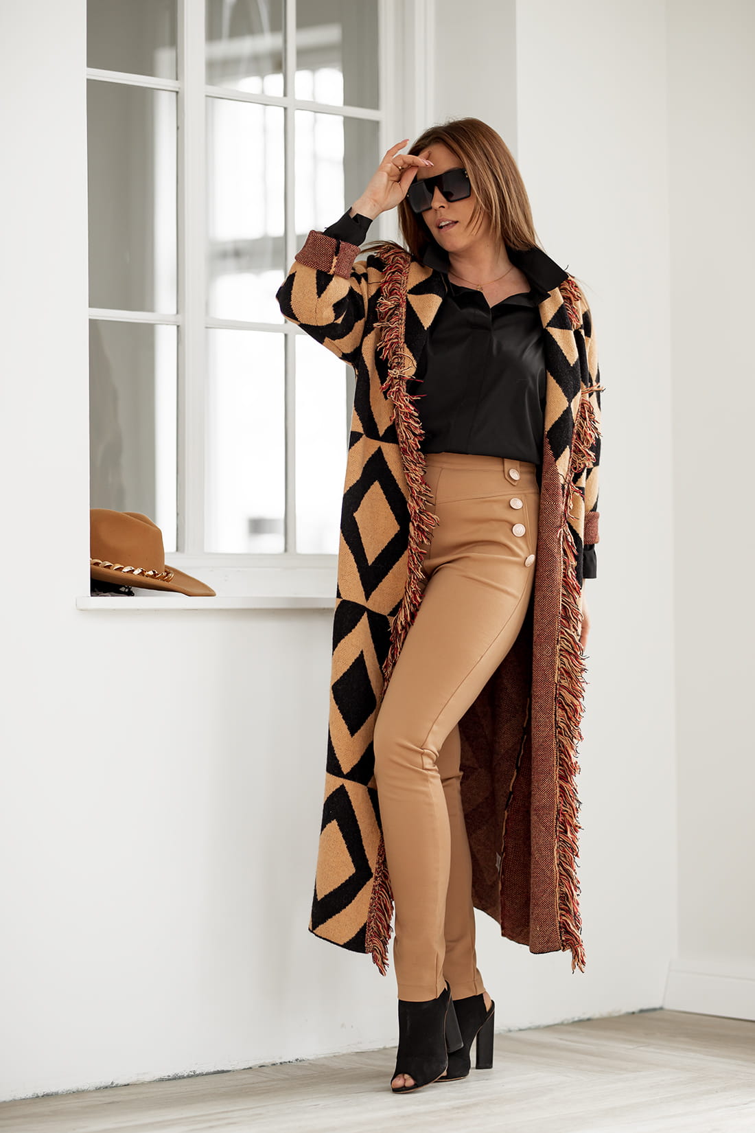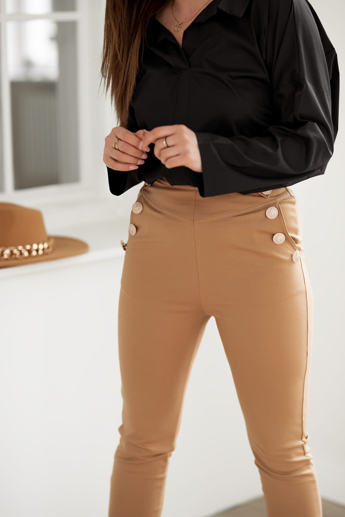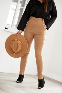 Spodnie z tkaniny punto z wysokim stanem camel polskiej marki Bastet Fashion
