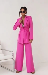 Stylowy garnitur damski Emma oversizowa marynarka z paskiem oraz szerokie spodnie kolor różowy polska marka LaBalancia