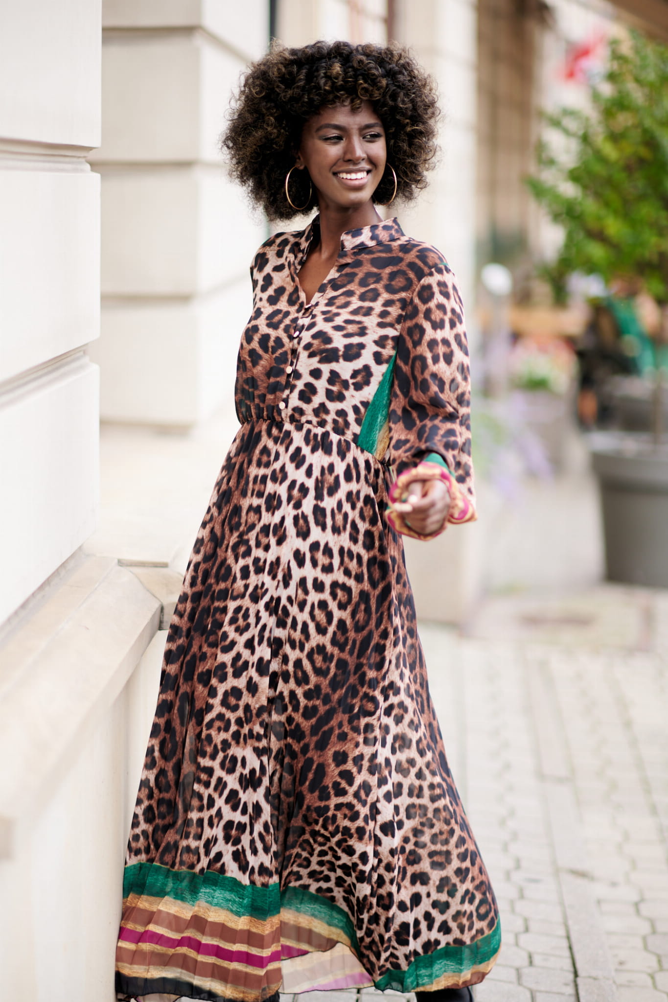 Sukienka damska maxi wzór panterka z zielonym wzorem moda włoska