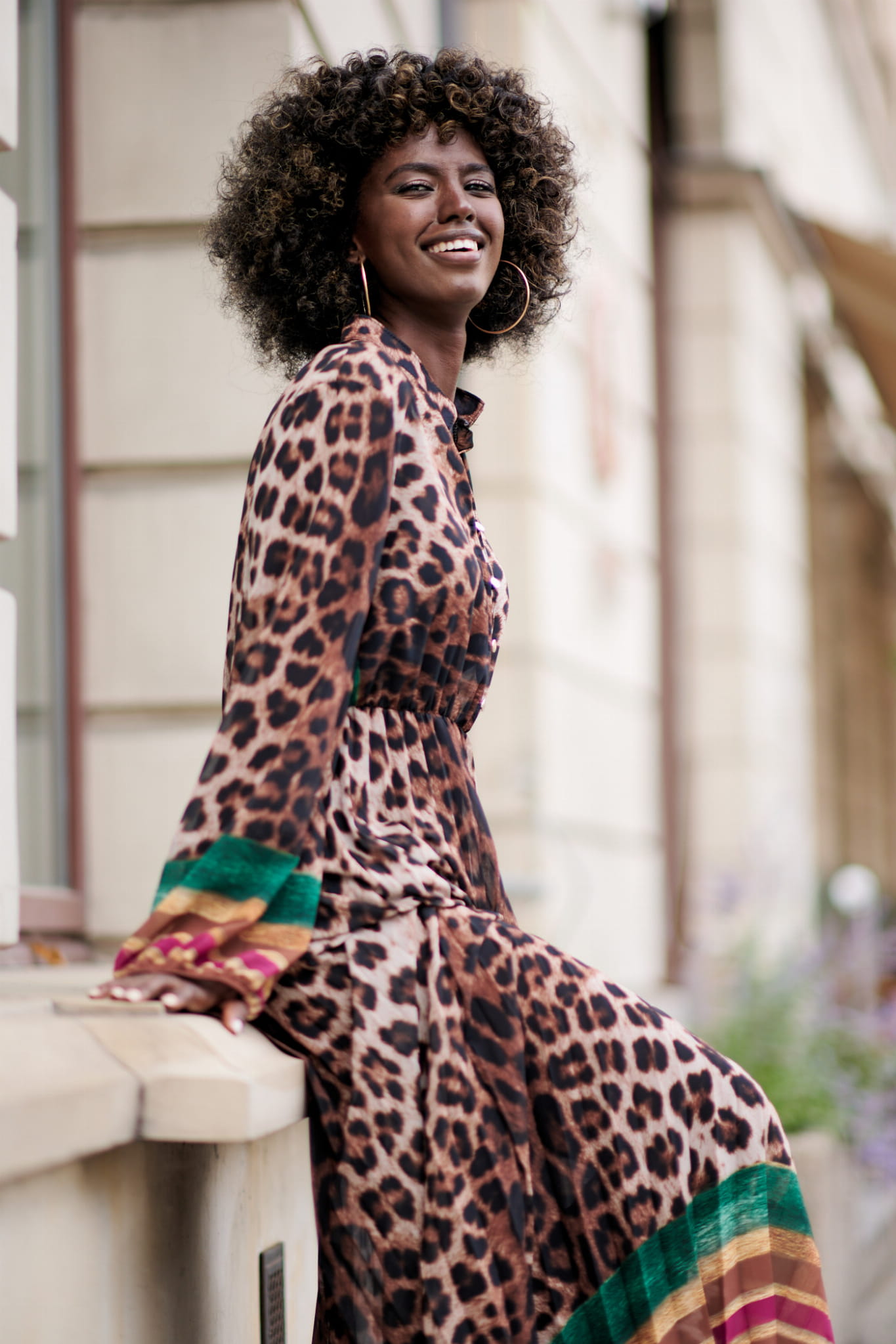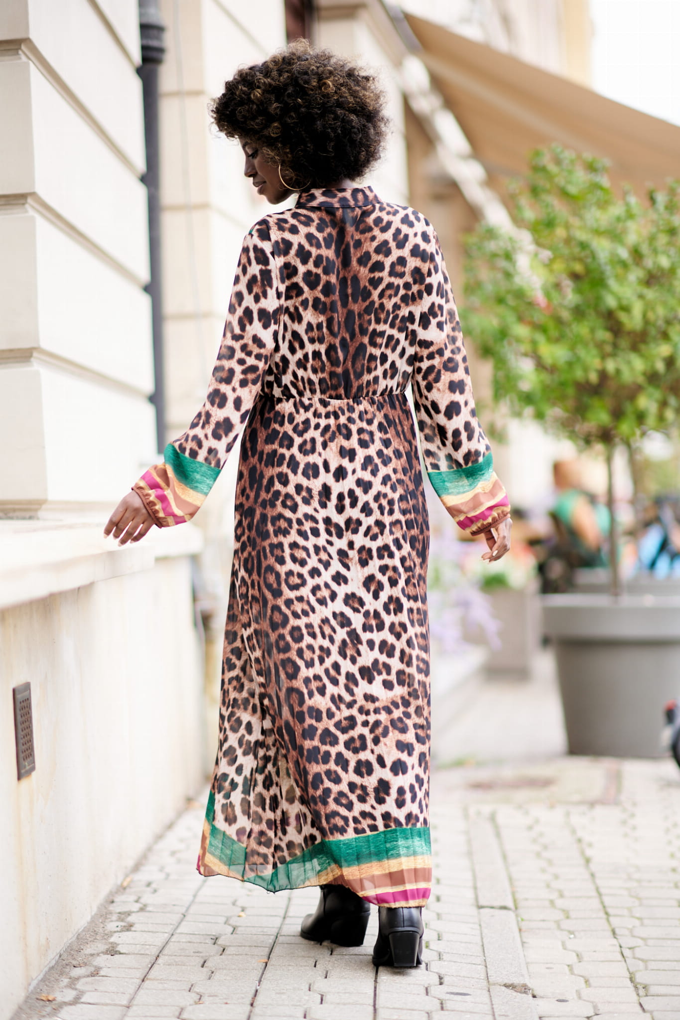 Sukienka damska o długości maxi z modnym panterkowym printem prosto z Włoch.